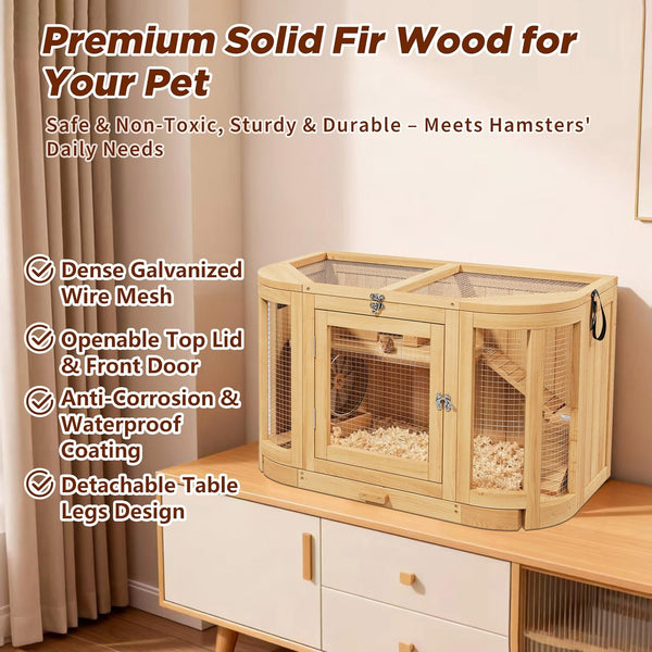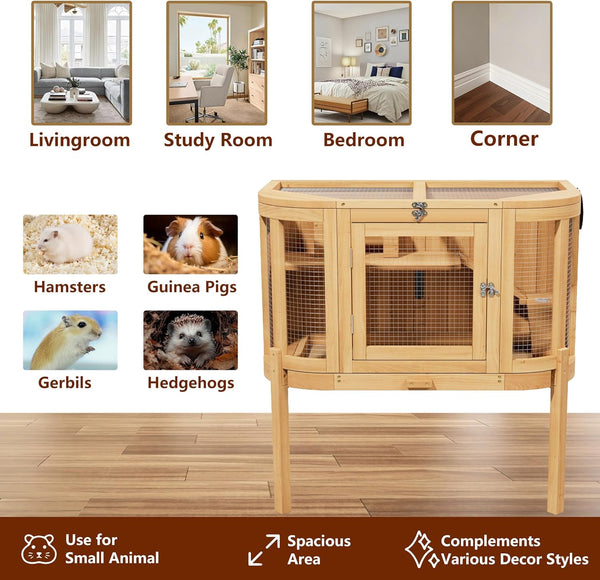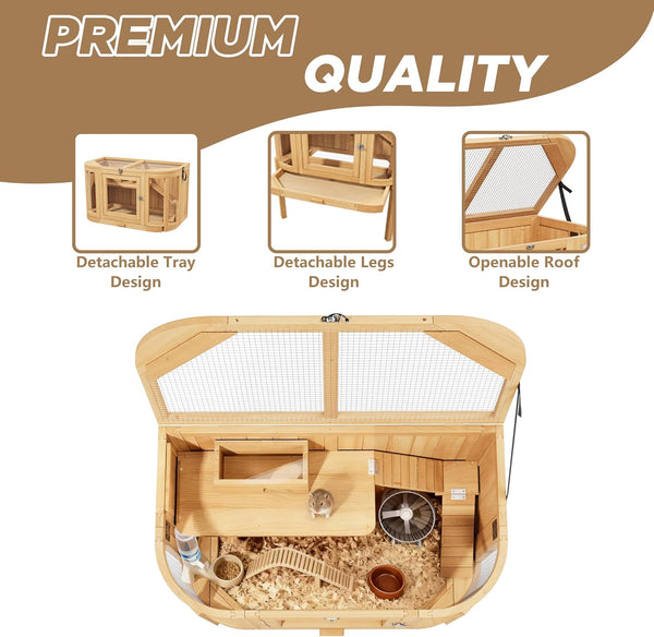 Hamster Cage with 4 Detachable Elevated Leg Stands, Guinea Pig Cages Chew Proof, Openable Mesh Top Small Animal Habitat for Hedgehog, Wooden Hamster House and Habitats with Pull-Out Cleaning Tray