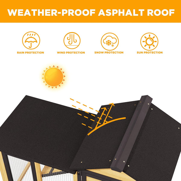 All-Weather Protective Roof: The outdoor run features a waterproof roof built to endure various weather conditions. It reliably shields the interior from sun, rain, and snow, maintaining a dry and secure environment suitable for both indoor and outdoor placement.