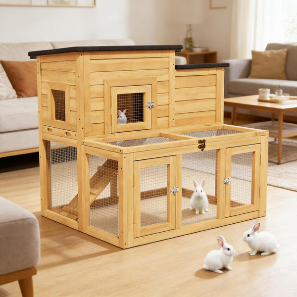 • Spacious and Well-Designed: This double resting area rabbit cage measures 37.8"L × 29.53" × 35.43"H, providing ample space for chickens, ducks, rabbits, and guinea pigs. The integrated activity area encourages natural movement, ensuring sufficient space for exercise and rest.