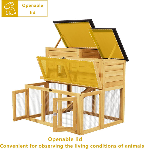 Rabbit Hutch & Chicken Coop with Wire Run, Wooden Poultry House with Pull-Out Tray, Waterproof Rabbit Hutch for Outside (Yellow)
